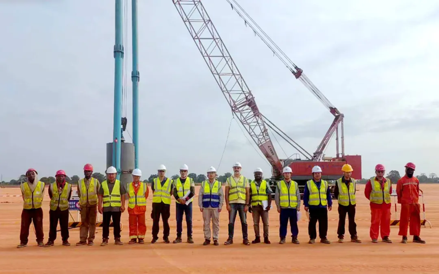 Recently, major progress has been witnessed on the AMUFERT Fertilizer Project in Soyo, Angola, which is executed by CNCEC-WUHUAN as the EPC contractor. The first dynamic compaction unit of the project has been assembled, commissioned and accepted. Trial compaction work at an energy level of 12,000 kN·m for the project site has been officially launched, marking its formal entry into the main construction phase.